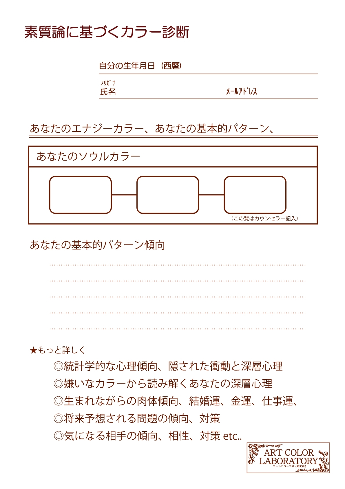 | 気質鑑定+カラーセラピー お試し15分コース |